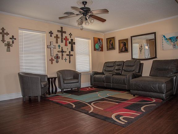 Beautiful 3 Bed room 2 bath on a corner lot. Open comcept living, dining and kitchen. Crown molding, Granite counter tops Covered patio nice stucco work shop and separate 16 X 12 lofted storage and afternoon shade. Also has RV Parking. Behind the hidden door shelf in the Utility is a large walk-in pantry. Plenty of room for kids to play in large back yard. All windows replaced with Woodbridge windows in 2015. New roof in 2020.