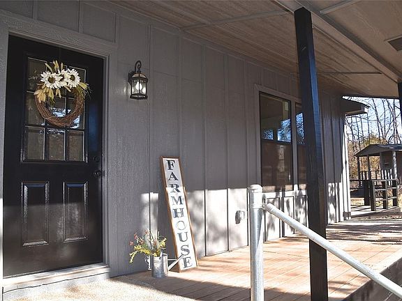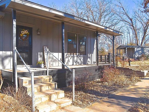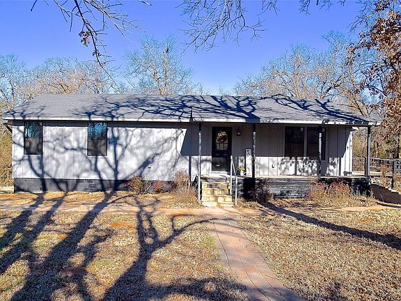 WHAT A DOLL HOUSE!!! This charming home with a circle drive was originally built in 1988 and has undergone quite the makeover! Taken down to the studs, this home is a COMPLETE REMODEL! Updates within the past year include: Roof, Plumbing, Electrical, Heat Pump (including duct work), Insulation (walls & attic), Hot Water Tank, Cabinetry, Flooring, Fixtures, Windows, Appliances, Bathrooms, Kitchen, Sheetrock... you name it! It's like a BRAND NEW HOME! Bedrooms are carpeted. All other is laminate flooring. The living room windows bring tons of light in! There are 3 exterior doors - one to the front porch, one to the side porch & one from the Master bedroom. Ceiling fan & carpet makes it a cozy space! Large kitchen has room for a breakfast table if you desire. Lots of cabinets/countertops, farmhouse sink, new appliances and 2 large windows looking over the back acreage. The primary bedroom boasts a HUGE walk-in closet with chest of drawers that stay and gorgeous full bath with double vanity with large shower. The secondary bedroom includes 2 separate closets and ceiling fan. The main bath has trendy black tile surround in the tub/shower combo and large vanity. The utility room supplies the hot water tank closet, furnace closet, washer/dryer hook ups, new electrical panel and extra room for bonus storage/extra fridge/freezer, etc. The property includes an inground storm shelter, a workshop & detached garage with automatic opener for one car with the other half being workshop area. This is such a peaceful property with tons of wildlife to watch, yet just 5 minutes from I-35 for easy commute to the metro! Relax on the front porch or the side deck for morning/evening coffee! There is also 1.73 acres adjacent to the back which is listed separately (MLS #1100012 ) if you need more acreage. *** No restrictions! Bring your livestock, build your shop! ***