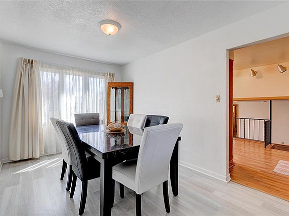 Another living space awaits when you first walk in, featuring light-colored hard flooring that perfectly complements all the natural light creating a welcoming space. The formal dining area is ideal for hosting, while the eat-in kitchen provides plenty of space for cooking and gathering.