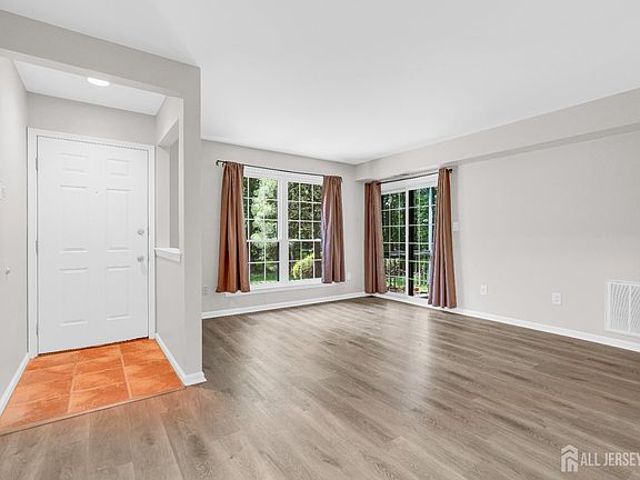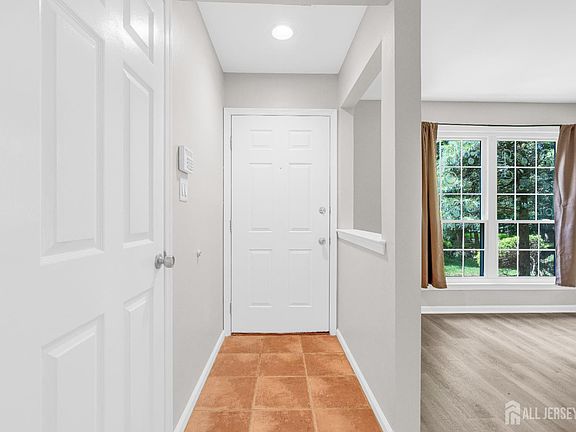 Ground Floor freshly painted 2 bedrooms 2 full baths condo with a peaceful private view. Open concept layout with living room and dining room area. Nice size kitchen with plenty of counter space and an overlay counter that is perfect for a breakfast bar area. Primary bedroom with ceiling fan, WIC and a private full bathroom. Newer windows, patio door leading to the balcony, well maintained furnace and hot water heater. Brand new flooring in LR/DR combo and bedrooms. Close to the bus loop for Metropark train station. North Edison school district.
