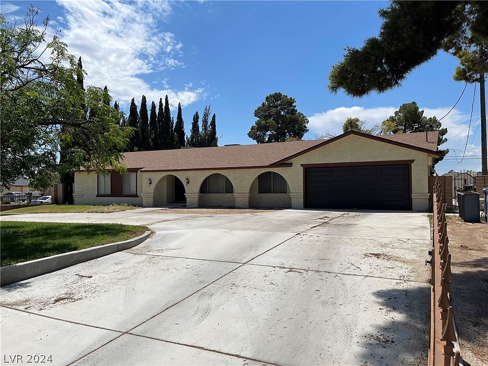 Welcome to your spacious oasis in Las Vegas, featuring a charming 3 bedroom, single-story home with No HOA! Situated on an oversized lot spanning almost half an acre, this property offers both comfort and convenience. Upon entering, you are greeted by a covered patio, ideal for enjoying the outdoors year-round, complete with a built-in BBQ for gatherings. A convenient storage shed and backyard gate access enhance the functionality of the expansive outdoor space. Inside, the home boasts a large garage with a workbench, providing ample space for up to 4 cars or additional storage. The interior layout includes separate family and living rooms, offering versatility for relaxation and entertaining. The kitchen is equipped with a practical breakfast bar and comes fully stocked with all appliances! The primary bedroom is generously sized, featuring a walk-in closet and an ensuite bath. Additionally, the home includes a washer, dryer and water softener ensuring convenience and efficiency!