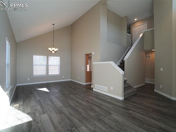 Beautifully maintained 2 story home east of Powers! Walk into a large formal living room and dining room with vaulted ceilings. Formal family room with wide open space. Large kitchen with dining area and breakfast bar. Laundry closet with hook-ups and half bath on main level. Primary suite with five piece bath on upper level. Two additional bedrooms upstairs with hall bathroom. Central air conditioning for hot summer days. Ample storage with fully unfinished basement. Newer flooring, newer lighting, newer paint, this home is amazing. Landscaped, fenced backyard with automatic sprinkler system! D-49 schools!