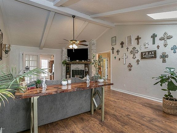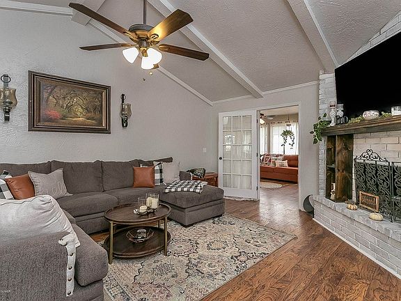 Walk into this beautifully updated home! Living room has a gorgeous corner fireplace and vaulted ceilings with skylights! The sun room can be used for a large second living area. LOTS of natural lighting! Isolated master bedroom with an updated walk-in shower. New carpet in the bedrooms. Rooms have been freshly painted. Located on a quiet street, this one will go quickly!