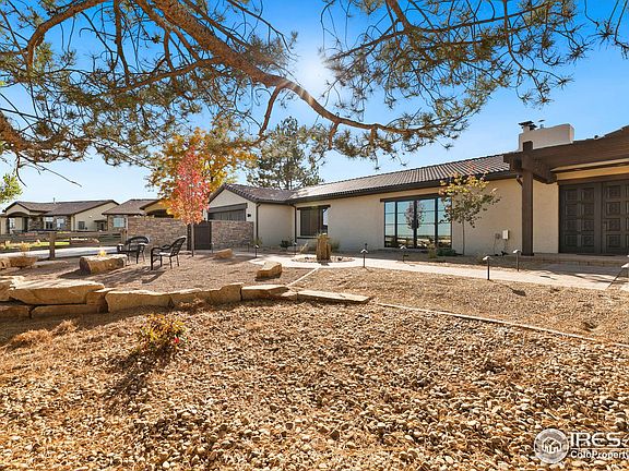 Completely reimagined, this sprawling ranch-style home sits proudly atop a ridge, enjoying expansive uninterrupted views from north to south and benefits from the most beautiful sunrises you will ever see. Enjoy the crackle of your wood burning fireplace as you spend an evening in one of two inviting living spaces. The modern kitchen, with its large quartz island, offers a unique layout with the butlers pantry managing the workload of the kitchen. The spacious adjoining dining area is open and bright, flowing effortlessly into another flexible living space that could also be a formal dining room if preferred. Everything you need is on the main level, including the primary suite, 2 additional bedrooms, 3 bathrooms and a study (or 4th bedroom). Entertaining is a delight as this home brings the outdoors in by way of two French doors accessing the front and rear private courtyards. Enjoy the eastern night lights, relaxing around your built-in gas firepit and trickling water feature. The finished basement offers a huge recreation area with a further 2 bedrooms, bathroom and a separate flex space for either storage or a home gym. There is an area perfect for the future bar of your dreams and a room that would easily make a wine cellar. "Location, location, location" with easy access to I-25 and within walking distance to award-winning parks, schools, restaurants and shopping along the Harmony corridor. Beautifully remodeled from top to bottom, all this home is missing is you!