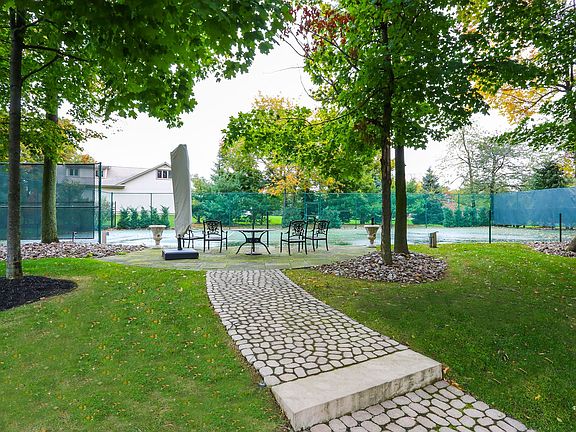 An elegant 2 acre property includes gardens, mature trees, tennis ct, ingrd pool, pergola, raised garden beds , koi pond, patio & adl storage. This all brick custom home has been exquisitely renovated & decorated. No detail left undone. Stately new covered entrance includes new doors as well. 2 sty marble foyer & staircase. Breathtaking architectural detail found thru-out. Kit includes wolf & sub-zero appl, granite cts & breakfast bar, fine cabinetry, walk-in pantry, & lg eating and desk area. 2 handsome paneled libraries, one w/fp. 5 new fp's total. Mstr bdrm w/ new spa bath & radiant