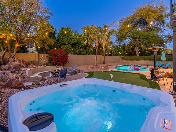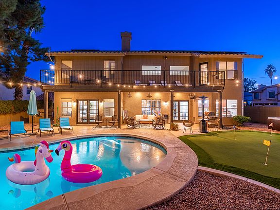 Welcome to Your New Fully Furnished, Move-in Ready Home! Amazing location & neighborhood with Heated Pool, Hot Tub and more! Welcome to this stunning 5-bedroom, 3.5-bathroom home in the heart of Scottsdale, offering 3,720 sqft of beautifully designed living space. This two-story property has everything you need! Interior Highlights: - Open Living & Entertainment Areas - Fully Equipped Kitchen Features a gas stove, wine fridge, Keurig and drip coffee makers, plus a second fridge for extra storage. - Game Room & Theater Includes a pool table, foosball, arcade games (GoldenEye & NBA Jam), and a garage theater for ultimate entertainment. - Primary Suite & Bedrooms: - Primary Bedroom: California King bed with en suite bath - Jack & Jill Bedrooms (2): Each with a California King bed - Guest Room: Private bath and California King bed - Fifth Bedroom: Two full-size beds - Living Room: Full-size sleeper couch Outdoor Features: - Heated Pool & Hot Tub. - Fire pit, outdoor dining space, and a mounted TV. - Mini-golf course and basketball hoop. - Fans with misters, a beverage fridge, and a propane heater for year-round comfort. Additional Perks: - Brand New Washer & Dryer Plus a second fridge for extra convenience. - Family-Friendly Touches Pack-and-play, high chair, and childproof outlet plugs. - Parking Driveway fits 3 cars Prime Scottsdale Location: Situated near world-class golf courses, upscale shopping, and top restaurants, this home is in a prime location for both leisure and convenience. - Phoenix Sky Harbor International Airport 20 mins - Old Town Scottsdale 18 mins - TPC Golf Course 10 mins - Taliesin West 15 mins - Desert Botanical Garden 25 mins - Camelback Mountain 20 mins This home is perfect for anyone looking to experience the best of Scottsdale with all the comforts of a high-end residence. 1 Month Minimum, Please Inquire!