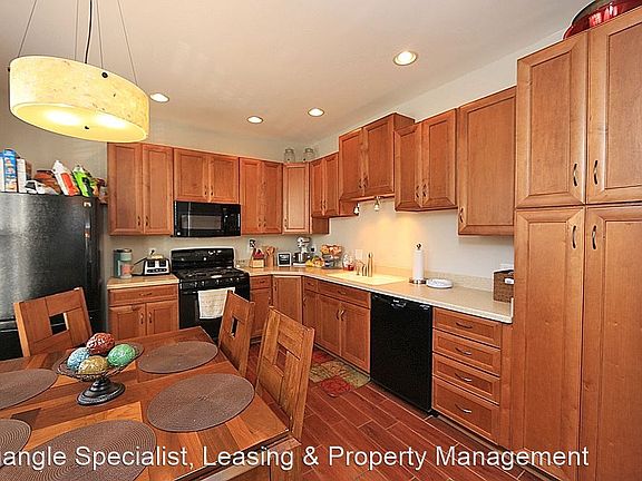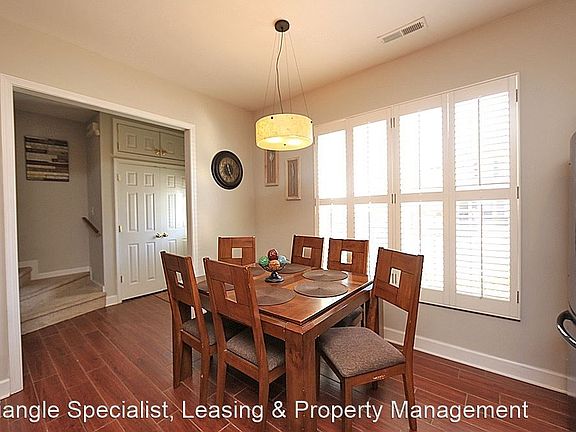 End Unit Townhome Backs to Umstead Park - This 3 bed/2.5 bath townhome located in Northwest Raleigh features an eat-in kitchen with ample cabinet space, hardwood floors, recessed lighting and kitchen appliances, which includes a gas range. The large living room includes a gas fireplace and glass sliding doors that lead out to a private patio perfect for grilling out and relaxing with friends. Neutral paint colors and carpet throughout. (RLNE4685094)