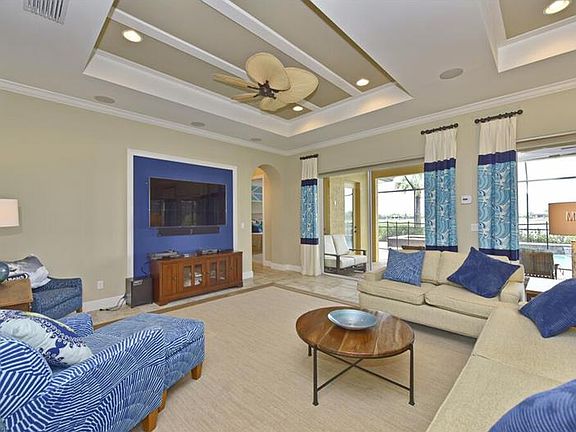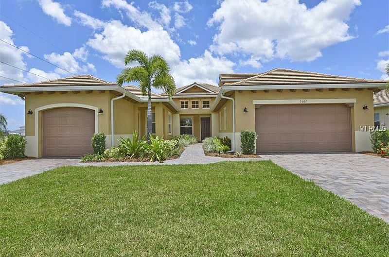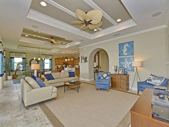 Waterfront Model home with full views. This beautiful POOL home has it all and leads by boat to intercostal water way. Upon entering the front door you will love the beautiful flooring and open floor plan that draws you to the sliders leading to the lanai and screened enclosure, a great area for your outdoor living and enjoying the in ground pool/spa and lake view. The volume ceilings, crown moldings, and window treatments throughout the entire home gives every room that spacious and elegant feeling. The kitchen includes a large closet pantry, breakfast bar, beautiful tile backsplash, gas stove, granite countertops and stainless steel appliances. Expansive master SUITE offers walk in closets, tray ceilings and custom builder designs. Master bath has DUAL SINKS, Garden TUB and SEPARATE shower. It is surrounded by a wonderful family friendly community that features a pool, fitness center, a community/club room with catering kitchen and large screen TVs and billiards table, Canoe/kayak launch area with free use of canoes and kayaks, tennis courts, a marina with direct access to the Manatee River and a gated security entrance. Also, Electric vehicle charger in garage - NEMA 14-50. Opportunity = Turn Key furnished +50,000 = $610,000.00