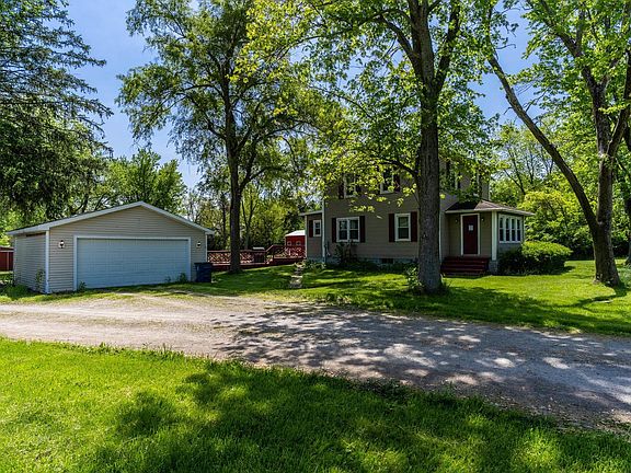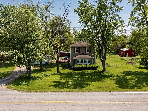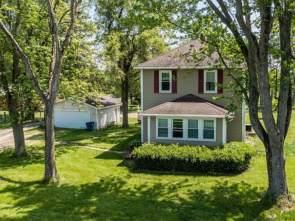 Country farmhouse living in a great, desirable location! Spread out on just over 5 ACRES, this 1500+ sq ft home *with BRAND NEW 30-year shingle roof* includes newer 20x30 metal outbuilding with overhead door, two-car detached garage, 36x36 steel-roofed barn with water+electric and horse stalls+storage, and 36x18 steel-roofed barn with 10ft doors, perfect for plenty of storage. There are 3 separate high grade wired fenced pastures as well as huge open pasture which is currently farmed. Home offers 3 bedrooms, 1.5 baths, large kitchen with lots of cabinet space, separate dining room which opens up to the spacious living room with refinished hardwood floor, den, and features hardwood floors throughout along with original real oak woodwork with built-ins throughout. Enjoy the expansive outside deck, perfect for cookouts, entertaining and simply enjoying the peaceful country setting! Home has newer sump pump, extra deep well+pump, water softener with iron tanks, and new blower motor in furnace. Don't miss your chance to own this 5 acre country property with so many possibilities to enjoy!