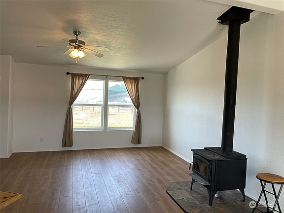 Warm and inviting 3 bedroom, 2 bath home on 45.8 acres of irrigated property with newer overhead pivot. Split floor plan with bath off of primary that can also be reached through utility room. Enjoy vaulted ceilings, new interior paint and new flooring, along with a freestanding wood stove for the winter nights. Outside most of your irrigation has been made easy by a newer overhead pivot throughout the main pasture. There are working corrals and a few separate paddocks. Barn is 48'x96' with a full open front and includes a separate office.