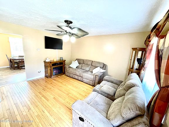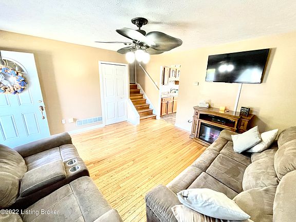 Welcome to this beautiful well maintained 4 bed 1.5 bath home. As you enter you will notice an inviting living room that has been freshly painted with hardwood floors. Enter the eat-in kitchen that has new flooring and back splashed recently installed. On the second floor you have the primary bedroom with double closets. Two other bedrooms and a full bath complete the upstairs. Enter the basement that is partially finished for additional living space. The family room in the basement has built-in wood burning fireplace to cozy up by while the family watched TV or plays games. Just off the family room you have a half-bath, the fourth bedroom and a utility room for plenty of storage. On the back of the home, you have a 21X16 deck to enjoy evening barbecues and entertainment. Jump from the deck into the 24 ft above ground pool for all summer fun! A detached shed with electric will remain with the home as well as the swing set. The home also has a completely fenced backyard. Residence is in close proximity to the Gene Snyder and Interstate 65. Multiple amenities to include restaurants and entertainment within a short drive. This home is a must see at this price.