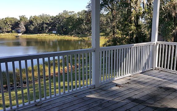 AMAZING LAKE VIEW...this adorable cottage style house with a new metal roof and wrap-around porch is a MUST SEE! This half acre waterfront lot is adorned with big live oak trees and a circular driveway. The house is a 3BR/2BA with 2 BR's and 1 BA on the main level and a HUGE BR/BA on the bottom level. Both levels have walkout double doors and tons of PORCH/PATIO to enjoy the lake view. Come home from a long day at work, pick up your fishing pole and test your luck on this great fishing lake.