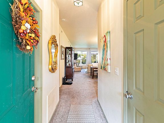 This unit features a front and back patio, an open floor plan, ample storage, 2 bedrooms with ensuite full bathrooms, forced air heat and cooling, a walk-in closet in the primary bedroom, and a view from every window.