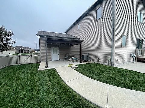 Addition of an oversized third garage in 2016, with attached covered patio off the back. The third garage is a great man cave area with TV hookup and can be closed off of the main garage with a sliding barn door for socializing or workshop. The main Patio was expanded in 2022, this patio makes an amazing area for family and friends’ gatherings, (42x28) with sliding door access from house or access from the third garage. Large enough and reinforced for a above ground pool. Large well-maintained vinyl fenced yard has ample grassed area for play. Auto underground sprinklers, gated access to fenced area from both sides of the house.
