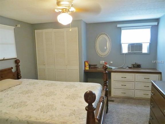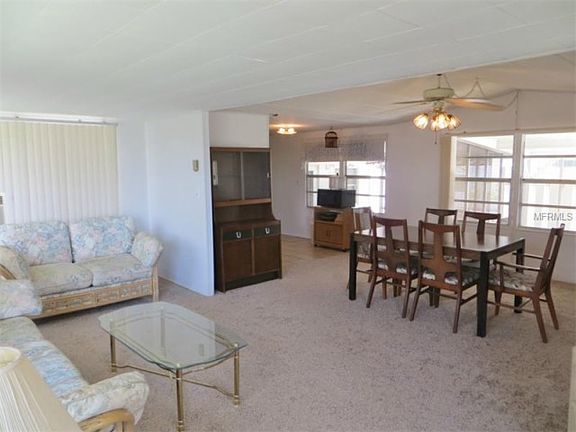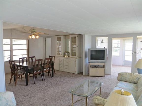 New carpet and spacious open floor plan and three bathrooms! Over 1900 SF under roof. Use all of it as a 2 or 3 bedroom and 3 bath home or use part of it as an efficiency. The upper main living area has 2 bedrooms and 2 full baths, a foyer, kitchen, and living room/dining room combo. The lower section, which could be used as an efficiency, includes the family room, a kitchenette, a full bath, and a small room that could accommodate a bed or be used as an office. There is also a screened-in porch, a carport, an attached workshop, and an outside storage closet. The master bedroom has an adjoining master bath with dual sinks. Brand NEW carpet has just been installed throughout. The three window air conditioners keep the home very cool and are inexpensive to operate. There is a propane water heater which also saves on power bills. The washer and dryer are included and are located inside. This home is located in the section where pets are allowed. Casa Loma also has no age restrictions. There is a community pool and billiard room. There are also shuffle board courts and a recreation center where they hold numerous activities including Bingo. There are outside picnic tables that overlook a large scenic pond. Casa Loma is a peaceful neighborhood and centrally located near shopping, the airport, dining, and many other activities. Monthly homeowners fees are only $65/month. This home provides a very affordable way to enjoy the Florida lifestyle.