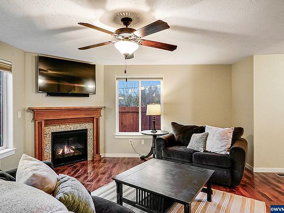 Conveniently located South Salem home minutes to I5, schools & shopping! 3 bedrooms with spacious bonus room/4th bedroom! Kitchen boasts large granite island open to living area & ample storage w/ pantry. Laminate flooring throughout main floor & cozy gas fireplace for chilly nights. Primary Suite has vaulted ceilings & WIC. A/C, covered patio and private fenced backyard!