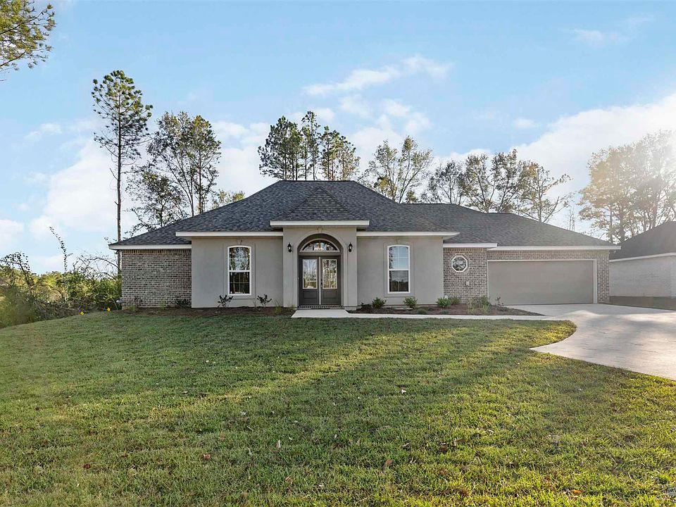 Welcome to your dream home in Milton, Florida! This custom new construction property is a perfect blend of modern luxury and comfortable living, boasting 2,557 square feet of meticulously designed space. With 4 beds and 3 baths, this stucco and brick masterpiece sits proudly on a generous 1/2 acre lot, providing ample space for your enjoyment. As you step inside, you'll notice the flood of natural light and the bright and airy atmosphere with 10-foot tall ceilings in the living room and 9-foot tall ceilings in the kitchen. The heart of the home is a chef's delight, featuring a large kitchen with quartz countertops, soft close wood cabinetry, a natural gas cooktop and a walk-in pantry complete with shelving. The kitchen's focal point is the expansive island overlooking the generous living room, creating a perfect space for entertaining and family gatherings. Unwind by the natural gas fireplace in the living room, complete with a built-in entertainment center that adds both style and functionality to this welcoming space. The large back patio beckons you to relax and enjoy the Florida sunshine, providing the perfect spot for outdoor entertaining or simply basking in the tranquility of your private retreat. The master bedroom is a true oasis, conveniently located down the hall from the laundry room for practicality. The ensuite bathroom is spa-like, featuring a freestanding soaking tub and a walk-in shower, complemented by an enormous walk-in closet – the epitome of luxury and convenience. The additional 3 bedrooms are generously sized and each boasts a large walk-in closet. 2 bedrooms share a Jack and Jill style bath with separate vanities, while the 3rd is adjacent to the full guest bathroom, ensuring comfort and privacy for all family members and guests. You'll also find convenience in its location, close to restaurants, schools, shopping & Pensacola Beach is just 40mins away!