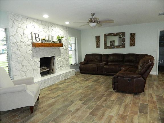 You'll love this open and inviting floor plan. As you walk through the front door you immediately feel at home. This well appointed property features wood look ceramic tile throughout, open concept living, dining, kitchen and family rooms. Wood burning fireplace in the Living Room. Must have white shaker cabinets in the kitchen. Granite counters, stainless appliances and a large island with bar seating welcome you into the heart of this home. Dining room will easily accommodate a dining table that seats 8-10. Sliding doors from dining room and family room provide access to open patio in the back yard. Patio is a great place to host barbecues with friends and family. Split bedroom plan has generous master bedroom with open concept custom closet. Bedroom 2 is light and bright. Bedroom 3 is oversized with large walk-in closet. Guest and master bathroom feature stone counters. Roof replaced 3 years ago. Kitchen appliances are appx 3 years old. Bring your clothes and furnishings and move right in. Optional HOA membership provides access to community boat ramp, playground and tennis courts. Grocery, shopping and dining within walking distance. International Airport is less than 5 miles away. Easy commute to anywhere in Central Florida. A Rated K-12 Cornerstone Charter Academy provides another option for school an is conveniently located only 3 miles from Darden Ave.