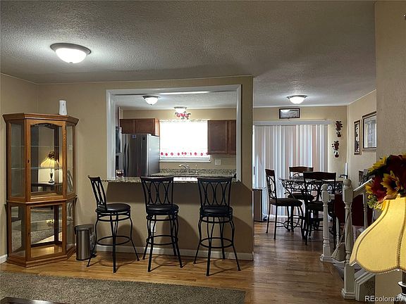 HUGE PRICE DROP, home has been priced to sell. This home is move in ready, it hosts 4 bedrooms 2 bathrooms. Perfect for a medium to large family size or anyone looking for a starter home. The home features granite counter tops, hard wood flooring, and a classic brick chimney for cozy fall and winter nights. Additionally, the property backs into a running/nature trail giving a taste of Colorado living. This is definitely a must see property and at this price point may not last long on the market. All information is deemed reliable but not guaranteed, Buyer and Buyer's agent to verify all information provided. **PLEASE NOTE** **PROPERTY SOLD AS IS**