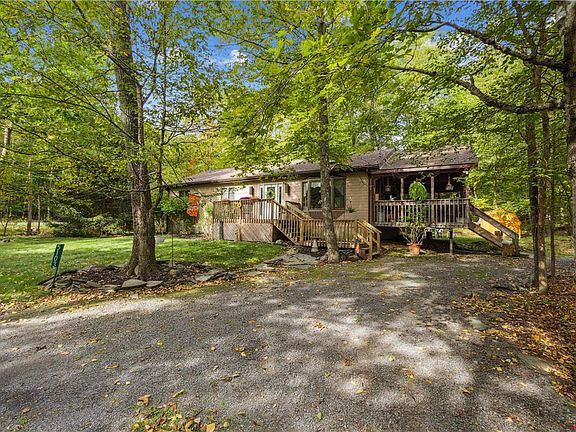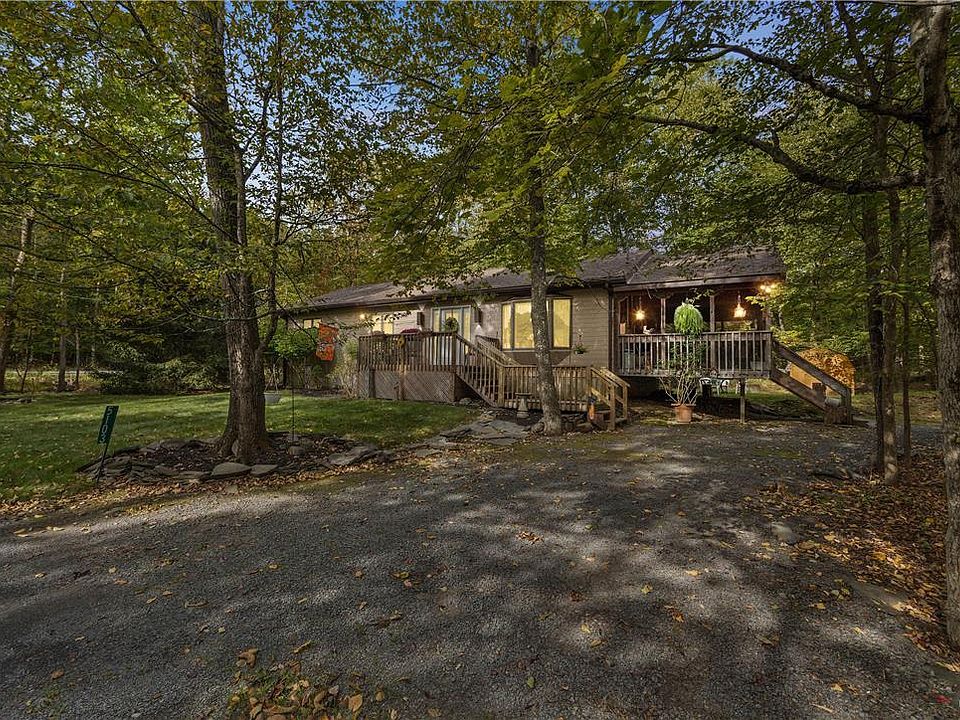 A peaceful, serene location with an abundance of majestic trees and varied woodland creatures. Whether you desire weekend retreats or permanently step back from the fast pace of the City, this well-maintained rancher is the perfect place to call home. It features an open concept with a full kitchen, dining room, and a family room with a skylight and a propane gas stove. There are 3 cozy bedrooms with double closets, 2 full baths, as well as a laundry room with lots of storage. Each room has its own thermostat for optimal energy efficiency. The roof and well pump were replaced within the last 5 years. You’re going to love the screened-in porch perfect for enjoying your morning coffee, meals or evening beverage and, if you’re lucky, a visit from some of the neighboring deer. Also included is a custom-built potting station with plenty of space for all of your gardening projects. Your money is bound to go further when you invest in the Poconos and everything that comes with it.