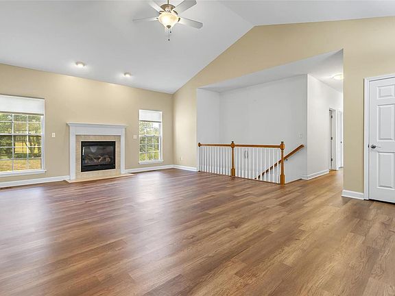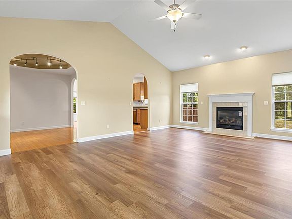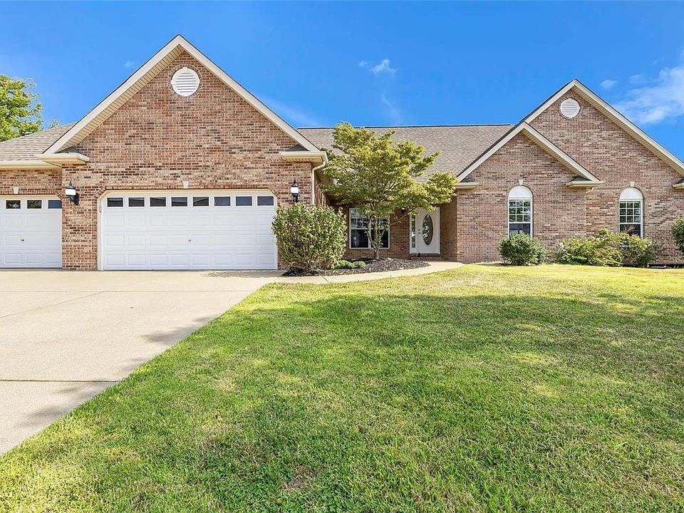 Gorgeous, 3 sides brick, ranch home nestled on just over an acre of land. As you approach note the great curb appeal offered by the extensive landscaping & charming covered porch. Step inside to find the sprawling Great room featuring luxury vinyl plank flooring, vaulted ceilings, open spindle staircase, & fireplace flanked by windows offering great natural light. The well appointed kitchen boasts beautiful wood floors, breakfast bar, ample cabinet storage, stainless steel appliances, pantry & breakfast room w/ bay door leading to the spacious deck overlooking the back yard. The main bedroom suite features coffered ceilings, bay window w lake views, spacious closet, & attached bath w/ dual vanity, tub & separate shower. Also on the main level find generously sized bedrooms 2 & 3, full hall bathroom, dining room, & laundry room. Also noteworthy are the full unfinished basement & lovely outdoor living area including the concrete patio & deck. Schedule your showing before it's too late.