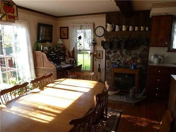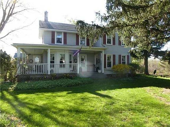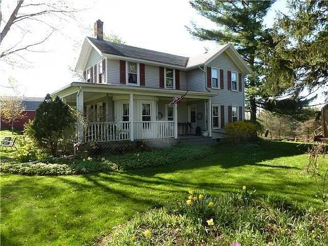 Charming farmhouse set on 17 beautiful acres with woods,greenarea,pond,grapes,and 3 barns.Huge eat-in-country kitchen. All rooms on 1st floor are huge including Dining room, Living room and Parlor. Large wrap around deck. Brand new bath on second floor. Furnace 7 years new, 200 amp electric service. Ready for horses , hunting or whatever you desire.