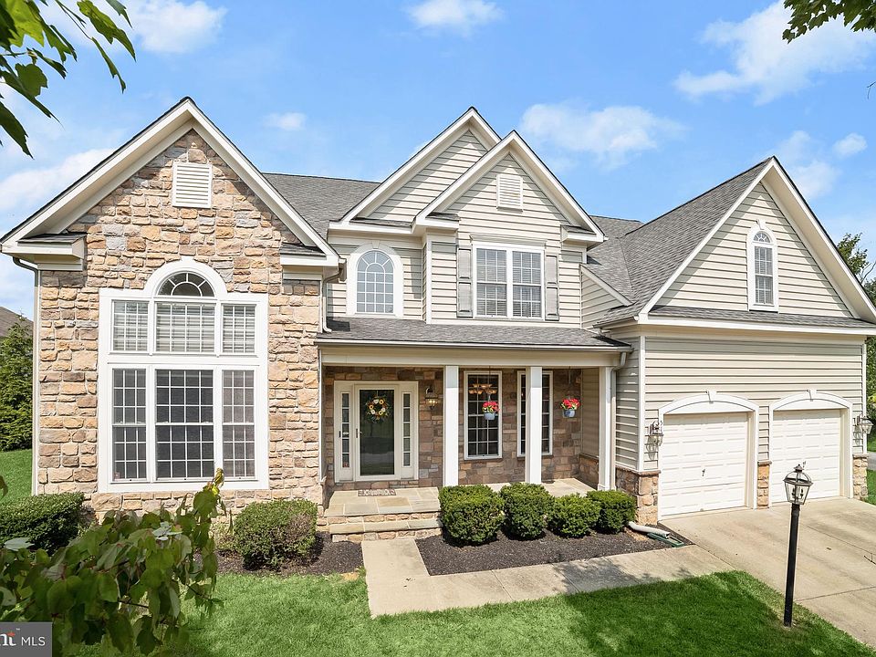 Beautiful, 2006 Max Award-winning Williamsburg Group home, located in the desired Glynchester Manor community of Ellicott City, boasts nearly 5,000 sq. ft. of luxurious living space with a bright and airy floor plan and updates that include the water heater, upper A/C, flooring, backsplash, French doors, countertops, invisible fence, and more! Enter through the covered front porch to a sun filled, two-story foyer highlighting wide plank hardwood flooring and a soothing neutral color palette. A high vaulted ceiling and accent molding are showcased in the formal living and dining rooms creating the perfect ambiance for intimate gatherings. The kitchen features top of the line Zodiaq quartz countertops, a large island breakfast bar, 42 in. wood cabinetry, stainless appliances, and a breakfast room with deck access. A rustic stone, gas burning fireplace creates the focal point of the off kitchen family room. Through glass French doors is a home office with its own access to the deck. Conveniently located on the entry level is the laundry room with built in cabinetry and a utility sink, and two half baths completing this level. Ascend the dual staircase to the primary suite detailed with two tray ceilings, and offers a sitting room with a cozy gas fireplace, walk-in closet and an en suite luxury bath with a jetted tub, separate shower, and dual vanity. Completing this level are three additional bedrooms and two additional full baths. The lower level has a bedroom, full bath, abundant storage space, and a recreation room with wide, walk-up stairs to the backyard. Enjoy outdoor living on the expansive Trex deck on the landscaped yard backing to mature shade trees.