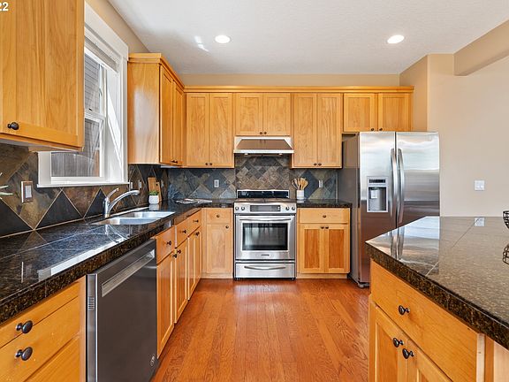 Lovely custom home on corner lot in NW Portland! Tall ceilings invite natural light throughout. Open kitchen boasts ss apps, granite, eating bar & access to patio! Primary has large walk-in closet, soaking tub, tile & dual vanity. Spacious upper level w/plenty of storage. Enjoy the fenced yard & mature landscaping or cozy up to the gas fireplace. Other features include built-ins, hardwoods, 2 car garage & more! Come see the all the amenities for yourself!