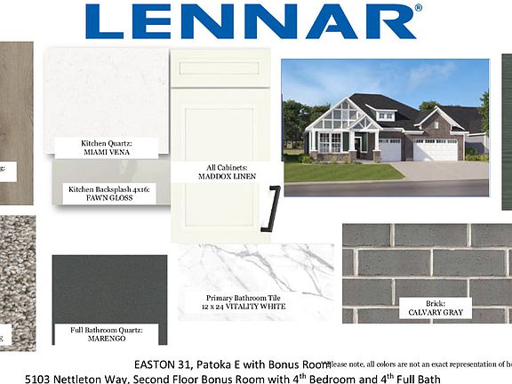 Bring your Golf Cart to the premier 55+ Active Adult Lifestyle community in Avon, Easton by Lennar! Introducing The Patoka with Bonus Room, 3045 sq ft, 4 BR, 4 Full BA, 3 Bay Garage! Enjoy morning coffee by the cozy fireplace in the Spacious Great Room accented with 6' windows and Cove Crown Molding, open to Dining area and Designer Select Kitchen with LG gas range, wall oven and microwave, and more. Study/Den with Glass Doors. Sweet dreams in the primary bedroom with Tray Ceiling, ensuite bathroom w/ Oversized luxury tile roll-in shower. Two additional bedrooms for guests or a craft room, and two additional full bathrooms on main floor. Plus, Second floor Bonus Room adds 713 sq ft w 4 th bedroom and Full bath. Host movie night on the Covered Patio. HOA includes full lawn maintenance and access to future Nottingham Club House with fitness center, on-site Activity Director, on-site HOA Manager, splash pool and lap pool, Pickle Ball Courts, Tennis Court, fire pit area, and more resort style amenities! Available for purchase now for August Move-in!*Photos/Tour of model may show features not selected in home.