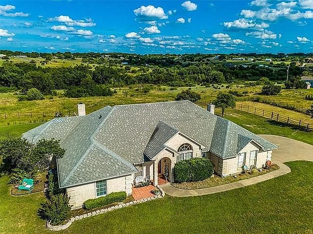 Brock ISD 4-3-3 (+ office) on 3.9 acres with a Pool. Beautiful Hill Top Views and No HOA. 2 Living Areas, Fireplace, Large master bedroom with wood burning fireplace, large master bath, 2 large walk-in closets. New HVAC 2020, New Roof 12/2019, New Nations Pure water softener with reverse osmosis 2021. New appliances (double oven, stove top, dishwasher and microwave). Buyer's Agent fee negotiable. Taxes $7273.06 (Appraisal District). Please - No solicitations for real estate services Call or text for showing 970-296-0746