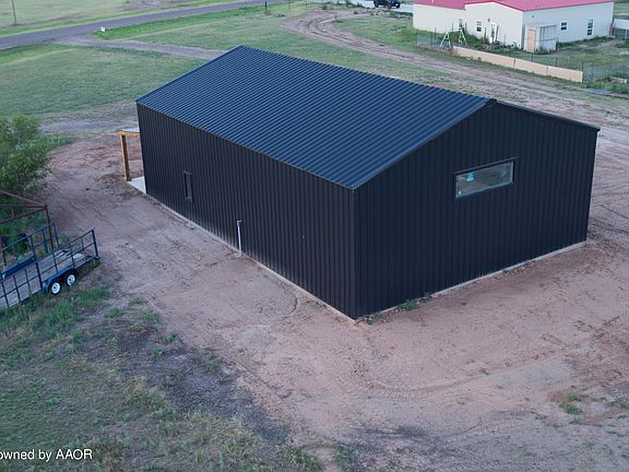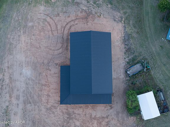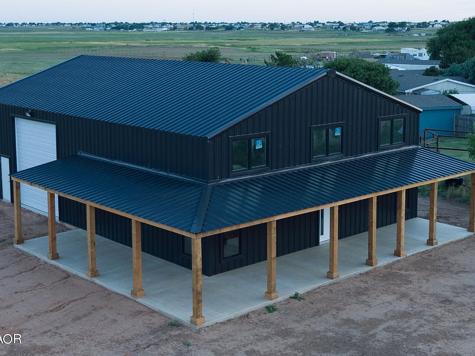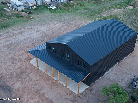 Barndominium with a sleek exterior and wrap around porch for sunset views. This 60x40x16 spray foam insulated property comes with a 5 ton HVAC system that covers both the home and the garage. Well, Septic, Propane, and Electricity are in place for the future owner. The 5.3 acres give endless possibilities for expansion or hobbies.