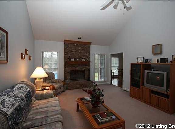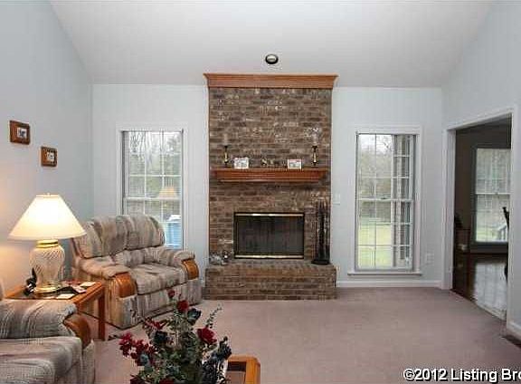 Yes! You can have an all brick split bedroom ranch on a private cul de sac with a meandering creek in your own back yard. Enjoy the changing seasons while sitting on the rear deck of this custom built one owner home. Or, grab your favorite beverage and your rocking chair and head to the spacious front porch. As you enter the home there is a welcoming foyer area and an adjoining formal dining room--perfect for family holiday dinners, or use as a home office or a formal living room as the current owners are. When the weather turns "frightful" outside there's no need to worry, just curl up by the wood burning fireplace with gas starter. The family friendly eat in kitchen has finished on the job hardwood flooring, honey colored oak cabinetry, peninsula bar top, smooth top range, microwave/range hood, pantry plus access to the rear deck. The master suite has a trayed ceiling with crown molding and a private bath with a double bowl sink, large whirlpool tub with an in line heater (spend as much time as you want and still have hot water), separate shower, tiled floor and a large walk in closet. The additional bedrooms are on the opposite side of the home for additional privacy. The second full bath has a tiled floor and is adjacent to this area. The first floor laundry also acts as a mud room area with access to the large garage. Seller indicated that the home has a water filtration system and a water softener that is owned by the seller and will remain with the property. Seller is offering a one year home warranty thru 2/10 Home Buyers Resale Warranty. Oldham County School system-at time of listing Camden Elementary, South Oldham Middle School & South Oldham High School districts. Room dimensions obtained from blueprint and are not guaranteed. Visit this inviting home today!