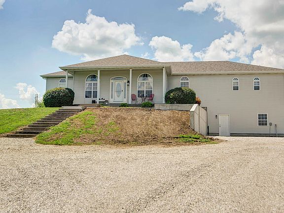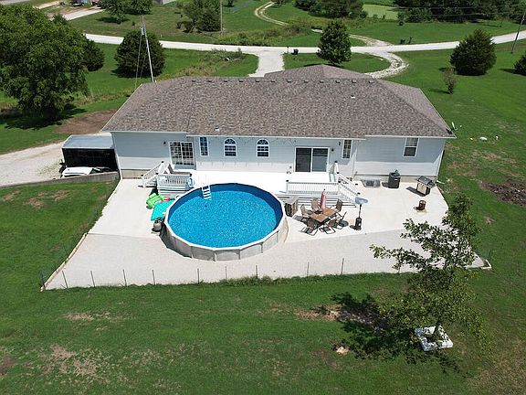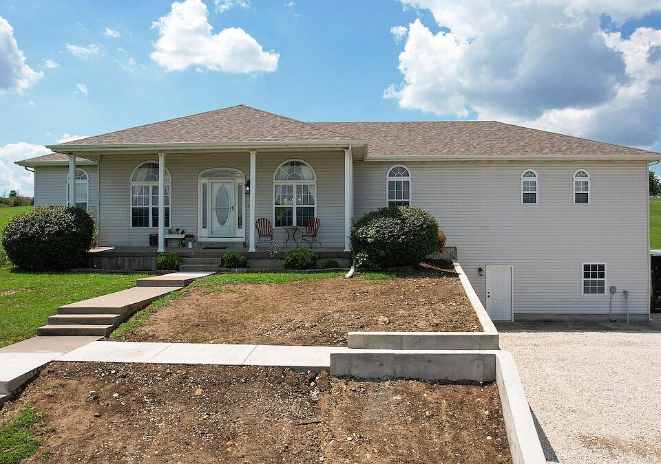 Amazingly updated walkout basement home on 3 acres conveniently located just South of Bolivar off Hwy KK. With 5 bedrooms, 4 full baths, and a 30x40 basement garage, this gorgeous home even has an above ground pool and private deck area. With over 4000 sq.ft. of living area upstairs and down, this home has had every surface touched and has a list of updates to satisfy the pickiest buyers. Just some of the features are new doors, new paint throughout, new stainless appliances, new light fixtures, quartz countertops, engineered hardwood flooring, new carpet, a newer roof, and just recently a new retaining wall and stairway. As an added bonus, the washer dryer and refrigerator all stay as well. The main level is very flexible with a massive carpeted great room with fireplace, an oversized dining room, and a completely remodeled kitchen area with bar seating, a full pantry, and extra sitting area. There are 4 bedroom on this level including a large guest bedroom with it's own full bathroom, another full bath, and two guest bedrooms on the south wing. The master suite is located on the north wing with access to the back deck and a step up master bath with double vanities, dual walk-in closets, jetted tub, a separate lavatory, and finally a full walk-in shower. Downstairs has a comfortable family room, a large rec room, the utility room, and a large two section 5th bedroom. The 4 car garage access is off the family room and features the garage spaces and plenty of room for storage or a workshop area. Outside has a private backyard with a fenced in backyard, a full deck, a newly poured patio, and the pool. It is very private and a great place to watch the stars and enjoy the quiet of the country at night. The home is just East of Hwy 13 with an easy commute to Bolivar or Springfield. Pleasant Hope Schools. Truly a 'turn key' home with attention to detail and updates rarely found on the market!