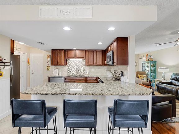 BACK ON MARKET! THEIR LOSS is YOUR GAIN! This mazing lake front property near Down Town New Port Richey will not disappoint. Everything has been recently updated so it is completely move in ready. Updated kitchen with newer appliances, granite countertops, inside laundry and a roomy pantry. Custom window shades and new windows in the back of the house. Three way bedroom split floorplan is wonderful for privacy. There is an additional room/space that is perfect for a work from home station, office, playroom, workout space or whatever you have in mind. Formal dining room has an electric fireplace insert, but if you would rather the real thing, it can be easily removed to convert back to fire burning. Outside is a beautiful oasis with lake access for fishing and sunsets galore. Relax on the stamped patio space or cool of in the pool. There's also a very cozy screened in covered porch in the back. Two car garage as well as a shed for outdoor storage. Bring your furry friends because it's very close to the dog park!! Roof 2019, HVAC 2018, AC ducts 2021, water softener 2021, and freshly painted this year! NO HOA!! Call your favorite Realtor immediately!