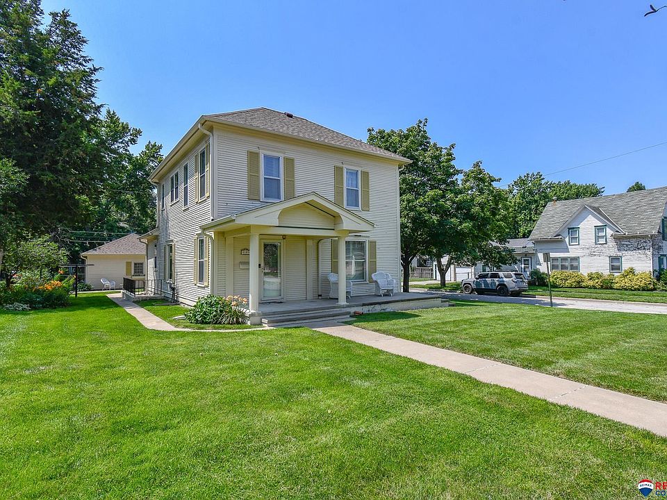 This beautiful 2 story turn-of-the-20th century home sits just 2 blocks south of University of Nebraska Wesleyan and a few blocks east of University of Nebraska East Campus in the artsy suburban village of University Place. Loved and well-maintained by the same owner for 60 years, it boasts remodeled kitchen and baths, as well as 4 bedrooms, including 1 on the main level. From the moment you walk through the front door you’ll notice the quality and craftsmanship of the hardwood floors and crown molding to the intricate details of the stair newel posts and balusters. Upstairs you’ll find 3 bedrooms including a large primary bedroom, a full bath and an additional space perfect for an office, sitting or gaming area. Also rare for this era is a poured concrete foundation with a separate entrance providing a dry space for additional living areas, clean open laundry area and plenty of storage. The large corner lot has plenty of patio space, garden areas and a newer 2 stall garage.