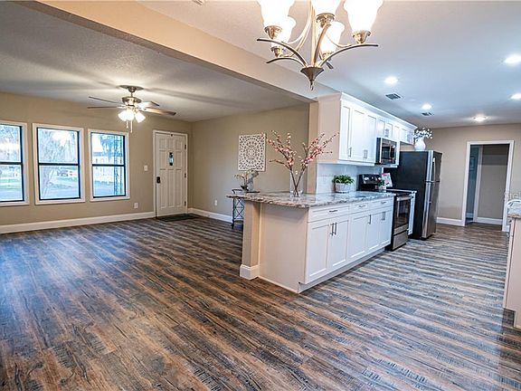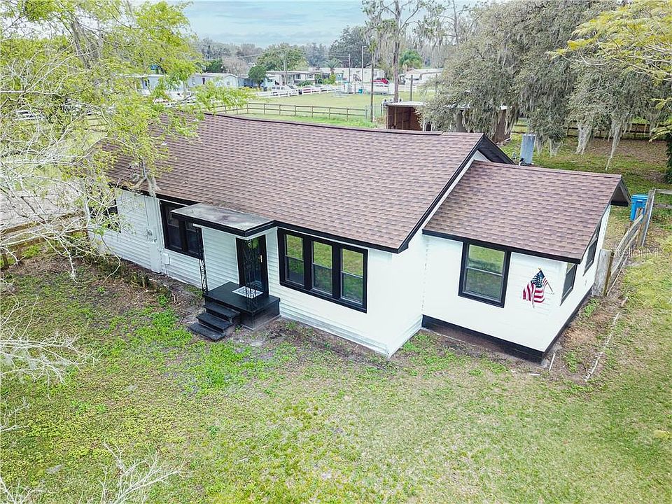 This turn-key move-in ready home with a VERY peaceful country setting offers .90 ACRES OF LAND ( 172' x 230') fully fenced lot. 3 Bedroom, 1 bath, 1,440 SF AC, HUGE 14 x 31 Carport with additional 11 x 31 concrete parking pad. 30-year Dimensional Shingle Roof installed 5/2018, offering buyers wind mitigation credits for lower insurance premiums. Energy efficient 3 Ton 14 seer AC installed 2015. Very open floor plan with family room and breakfast nook. The Chef in your family will love the new 42-Inch Custom-Crafted White Maple Kitchen Cabinets with quiet close doors and drawers. 3-inch subway tile backsplash & Gran Perla Granite Counter Tops w/ a polished beveled edge. Brand NEW Clean Steel (smudge-proof) GE Appliance Packages offering a 1-Year Manufacturer's Warranty. Classic Grey water-resistant scratch-proof laminate floors flow throughout the house except for the bedrooms where new carpet has just been installed. Large bath with new double vanity, 18" plank tiled shower, and new tub. Freshly painted inside & outside, new fans, lights, toilet. 30" x 14 pole barn. Great location with easy access to I-4 near Great Schools, Shopping, Fishing, Golf, Tennis, Commuter Routes, and Office Parks.