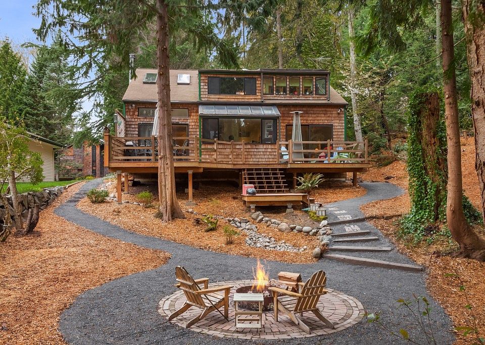 Beautiful, timeless, NW contemporary, Daffron-built, custom home. Some of the many features include: 1/4 acre of peaceful, private, serene, parked-out property that backs to greenbelt, Relaxing backyard deck and fire-pit area, Sweeping vaults with clear cedar, & sturdy beams, huge garden windows, custom driveway pavers, Cozy wood fireplace, main floor master suite. Detached garage has loft & running water. Come home to your own private NW retreat.Much more!!