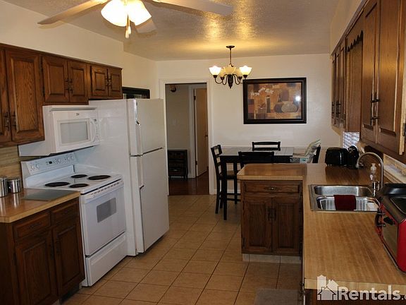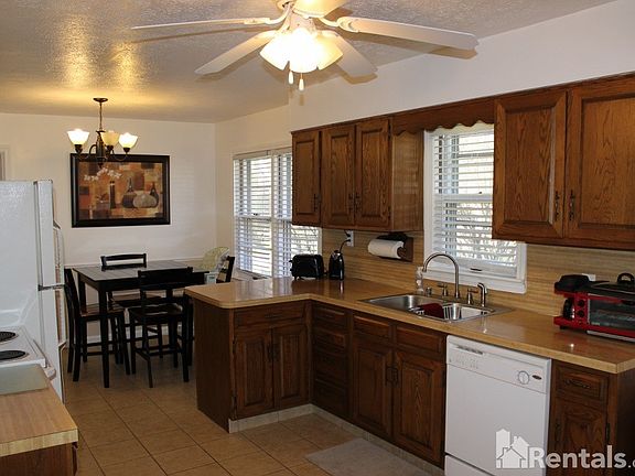 3 bedroom, 1 bath, 2nd family room/bedroom, fireplace, lots of kitchen cabinets, countertops, breakfast bar and desk/planning area, 3 car mechanics garage w/additional storage, fenced yard, on dead end street, convenient location.