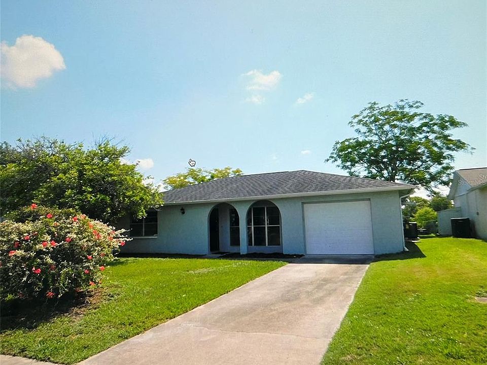 This ADORABLE 3 bed 2 bath home has been COMPLETELY UPDATED and overlooks a beautiful lake! This home features brand new laminate flooring throughout and a brand new kitchen with NEW STAINLESS STEEL APPLIANCES, GRANITE COUNTERTOP and NEW CABINETRY. The Dining area and breakfast bar have a beautiful view of the lake and is the perfect spot to sit and watch the morning sunrise over the lake. The split floor plan offers 2 bedrooms on the left side of the home with a HALL BATH THAT HAS BEEN COMPLETELY REMODELED with NEW TILE FLOORING, NEW VANITY W/GRANITE TOP and a NEW TUB AND SHOWER The 3rd bedroom is located on the right side of the home with another bathroom located off the kitchen with a NEW VANITY AND GRANITE TOP as well. The A/c was installed in 2022 and the roof is 10 years old. There is a large covered and screened patio area at the back of the home also offering relaxing views of the small lake. and BONUS!!! THE HOT TUB IS INCLUDED. The No HOA and no CDD fees! Don't miss out!