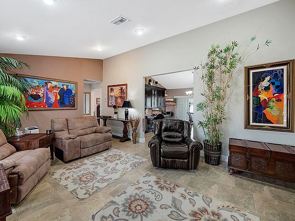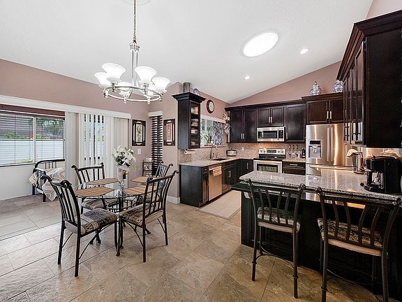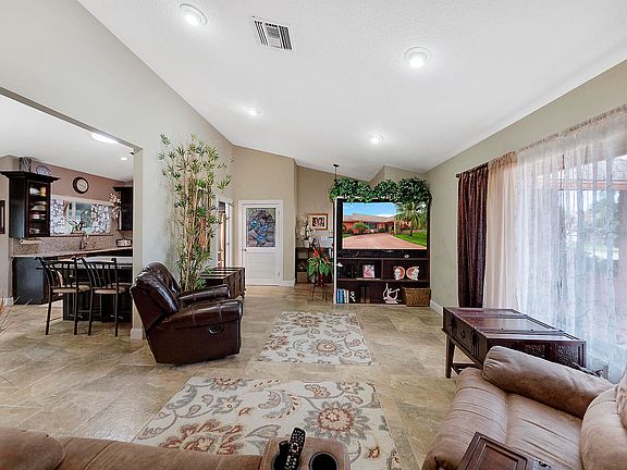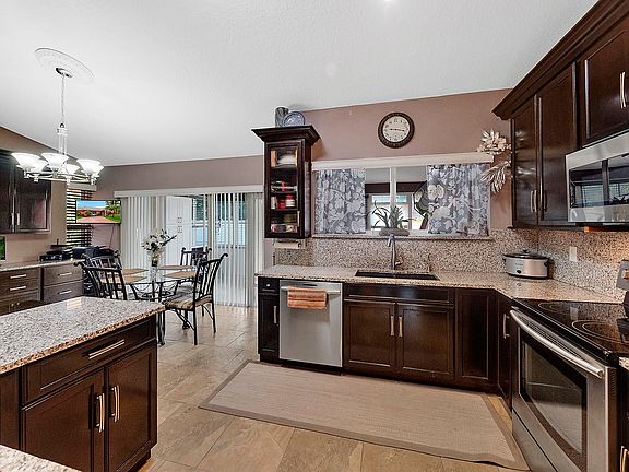 This is an amazing home, renovated to anyone's liking. All tiled throughout, no carpet here, even on the patio, and the garage, which is also air conditioned for easy conversion to a room if wanted. Brand new, double brick paved driveway, brand new AC, all bathrooms were renovated as well as the kitchen. Stainless steel appliances, granite counters snack bar, skylight makes it so bright and cheery. Outdoor lighting, motion front and back, great curb appeal. This home also has 2 patio's one closed in with sliding plexi glass windows, will withstand 60 mph winds, and another off master bedroom. Kitchen dining area has built ins, with desk. All new accordion shutters, no popcorn all removed. LED lighting, Master bedroom has walk in closet with built in cabinets, Crown molding, Central