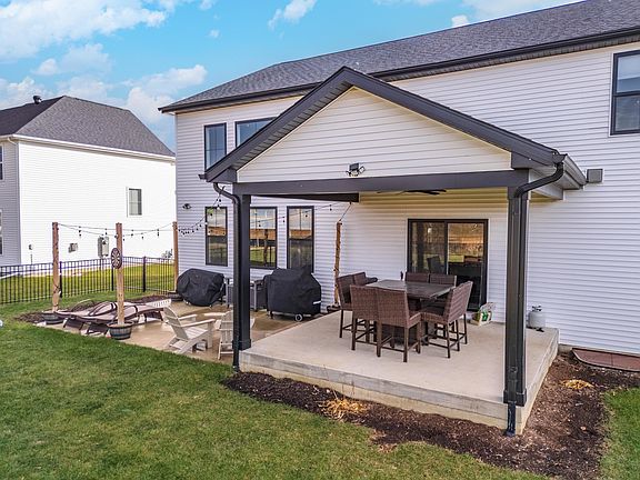 AMAZING 2 year old home ready to move in!!! 5 Bedrooms, 3 full baths and a beautiful half bath with shiplap. Large Dining Room, 2 story Living Room with many windows, gas fireplace and built in's. Open floor plan to the gourmet Kitchen with white cabinets, walk in pantry, huge center island eating bar with quartz counter tops, tiled back splash, Range hood, under cabinet lighting, stainless appliance including a beverage fridge in the coffee bar. Mudroom with built in lockers. First floor Laundry Room with sink and cabinets. Upstairs are 4 Bedrooms, Primary Suite with his and hers walk in closets, outstanding bathroom with tiled surround walk in shower, freestanding tub, and 2 sink vanity. Finished basement with a dream custom bar, Family Room, Bedroom and full bath. Plenty of storage space. Fenced back yard, covered patio and a separate patio. Don't miss this beauty!!!!