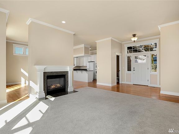 Beautifully maintained rambler w/ 3 bedrooms, 2.5 bath & den/office boasts 1,841 sq.ft of living space w/ vaulted ceilings, hardwood floors, see through fireplace & gorgeous views of Skyline Marina, the San Juan's & Burrow's Bay! Kitchen is bright w/ white cabinetry, new appliances, gas cooktop, & slab granite. Master features 5 piece en suite bath w/ double vanity, heated tile floors & large w/in closet. Attached 2 car garage. Addtl. 1 car garage & 1,052 sq.ft. shop in basement. RV parking.