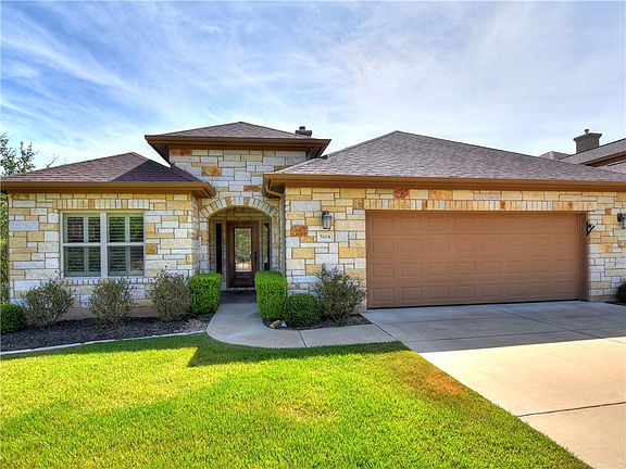 Active Adult 55+ Community in the heart of the Texas Hill Country; Greenbelt location with tree-top views from oversize deck; crown molding & plantation shutters throughout; KITCHEN has an awesome 12 ft. granite island, built-in wine refrigerator, under counter drawers, stainless appliances, cove & under cabinet lighting; FAMILY ROOM offers a floor to ceiling stone fireplace & a wall of built-ins, there is a large full view window to view the outdoors; private dedicated STUDY; GUEST SUITE with full bath has a privacy pocket door to totally separate it from the rest of the home; MASTER SUITE with His & Her closets, dual granite vanities, large walk-in shower and separate soaking tub. Most of the furnishings in this home are for sell as well, including the 2 handsome work-benches in the garage.