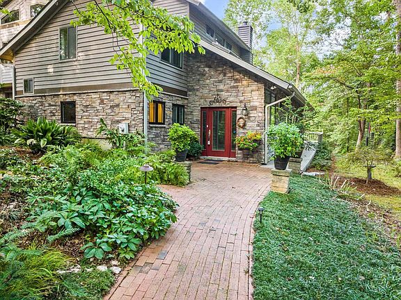 Rare 7+ acre private wooded setting close to Downtown & Cary - Idyllic setting w/ gardens & natural areas - One owner custom built home w/ passive solar features including a 4 zone Geothermal water source heat pump - Natural light & abundant windows throughout - Slate tile floors on main level - Hardwoods on second & third levels - Island kitchen w/ granite tops, SS appliances & under counter lighting - Rustic stone surround fireplace w/ woodstove - Spacious owner's suite w/ sitting area, private balcony, vaulted ceiling & skylights in bath, huge walk in closet - Bedroom #2 has a private screened porch - Unique "Treetop" third floor office - Multiple office spaces & exercise rooms - Workshop in garage - Greenhouse - Extensive decking - Carport - Don't miss this one of a kind opportunity!!