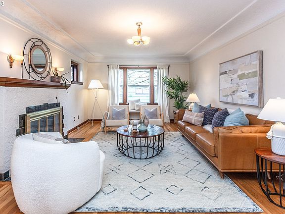 LOCATION! Captivating Cape Codder in Concordia with simply amazing old-world details. Formal entry, large living room with hardwood floors, natural wood moldings and original fireplace with period sconces. Vintage kitchen with arched cabinet doors and large eating area with built-ins. Two bedrooms on main, upper primary suite with renovated, timeless bath. Lower level boasts a finished family room with new LVP flooring and wood burning fireplace and a 4th bedroom with half bath. Fenced backyard has a large deck and paver patio with space for gardening. Fantastic corner lot and location; you are in the center of the Northeast's most sought after neighborhoods. Take a stroll to New Seasons Market, Kennedy School, the Alberta Arts corridor and Killingsworth's "restaurant row". Great cafes, restaurants, galleries. Live and shop local! Hard to beat this close in neighborhood! [Home Energy Score = 1. HES Report at https://rpt.greenbuildingregistry.com/hes/OR10193651]