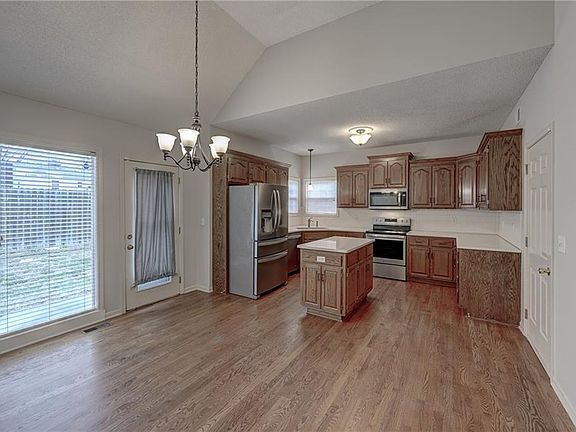 True Ranch style home features vaulted ceilings, new carpet, and fresh paint throughout. The updated kitchen boasts beautiful quartz countertops, stainless appliances and hardwood floors. The finished basement offers additional living space, a non-conforming 4th bedroom. You'll love the convenience of the main level laundry as well. The backyard is fully fenced, providing privacy and a safe space for kids and pets.