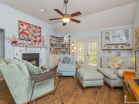 Amazing home located in the highly desirable community of Haile Plantation! Home has been extremely well-maintained and is move-in ready! Recent upgrades include gorgeous textured wood laminate floors throughout the living space and bedrooms, updated kitchen cabinets & countertops throughout, newer interior paint, and an air purifier system. French doors open from the living room directly into the backyard so you can enjoy the beautiful sunshine on demand! Other wonderful features include a cozy screened in front porch, fireplace, tile floors in the kitchen and bathrooms, and custom built-in shelving. Located within a short distance to the Haile Village Center where you can find restaurants, shopping and more! Don't miss your chance to view this beautiful cottage style home!
