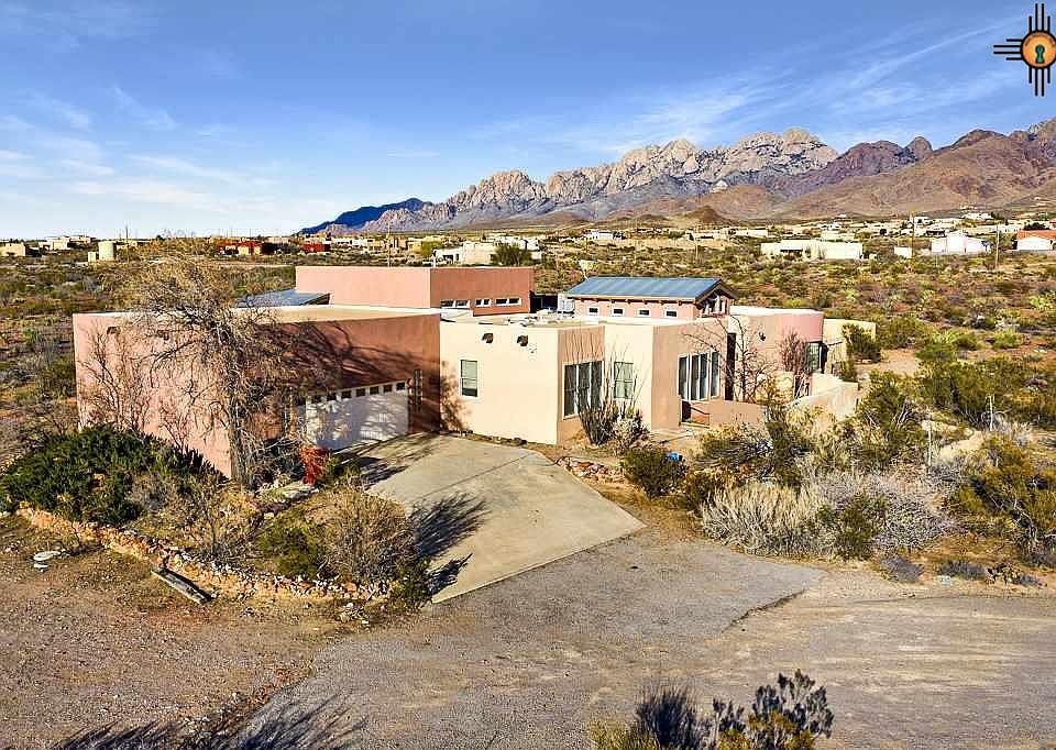 4 BR custom-built Contemporary ADOBE home nestled on 5 acres in the Talavera Subdivision, located SE of Las Cruces, NM. Constructed by the Mesilla, NM expert who understands the details, technique, and principles of adobe construction. 3160 sq ft , open floor plan with high ceilings, large windows, skylights and clerestory windows. Gorgeous ceilings with vigas and wood beam window accents are a 'must see'. Saltillo tile floors throughout. Each bedroom has direct access to a bathroom. South facing atrium/ study area with 14' ceiling, built-in bookshelves, desk and opens onto an enclosed patio. PLEASE NOTE: Refrigerated air installed August 2019. New TPO Roof in 2015. Exterior re-stuccoed and interior repainted August 2019. The home has two central gas forced air furnaces. Two water heaters. Kiva FP and a pellet stove. Domestic well with an estimated yield of 15 gpm. Oversized dbl garage with 3 large storage closets. East facing enclosed backyard with views of the Organ Mountains.