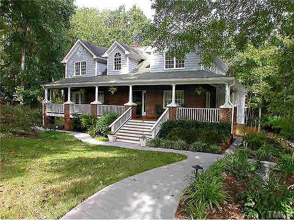 Hard to find custom home w/ basement. Relaxing full wrap porch 93 ft long, backing to woods & slight view of golf course. Incredible open design with 2 story family room opening to custom designed Kitchen. Family rm features a full 2 sty brick fireplace with TV nitch. The family rm also opens to a gorgeous sun rm. with french glass door sliders. Master suite has new bamboo flrs, spacious cedar closet & spa like BA. All BR's up access to full BA. New furnaces 2012. Fenced yard. Finished 3 car gar & carport.