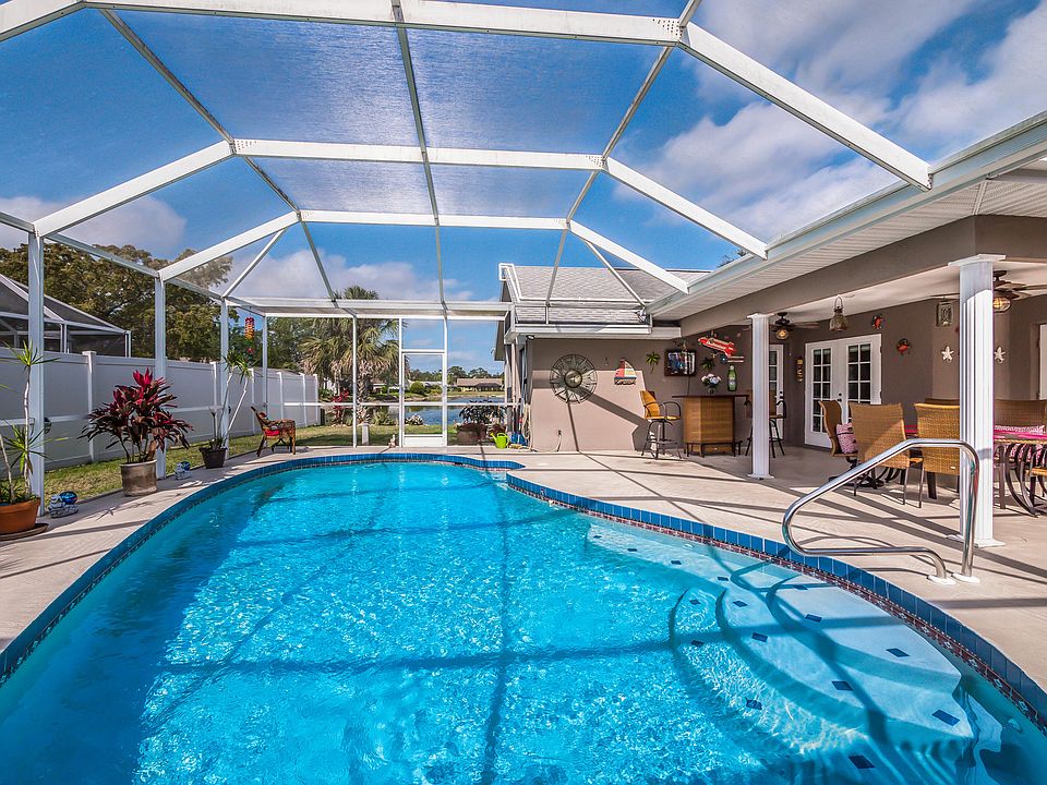Absolutely stunning and move-in ready, this immaculate West Bradenton POOL HOME home has everything you've dreamed of for a fabulous Florida lifestyle!!! Perfectly set on a manicured over-sized LAKEFRONT LOT, on a quiet cul-de-sac, this lovely established neighborhood, near Blake Hospital, is convenient to everything and only 7 miles to the Gulf BEACHES!!! This well-built 3 Bedroom/2 Bath home has been completely updated and shows like a model. The unique flexible floorplan features both formal and informal spaces designed for easy entertaining and comfortable family living. The separate Living Room, Dining Room and Family Room all feature plantation shutters, cathedral ceilings and beautiful wood-look flooring. The gorgeous updated kitchen has European-inspired cabinetry, granite counters, stainless steel appliances, a sleek range hood, and pendant lighting above the breakfast bar. Grab a snack from the custom service bar and step out to your private backyard pool deck where entertaining is easy on the oversized screened lanai with peaceful long lake views and cooling breezes. Head back in and enjoy an evening movie in the large comfortable family room with pocket door entry to the guest bedroom wing, second bath and indoor laundry. This well-maintained property has great curb appeal with lush landscaping, a welcoming entry and plenty of on-site parking.